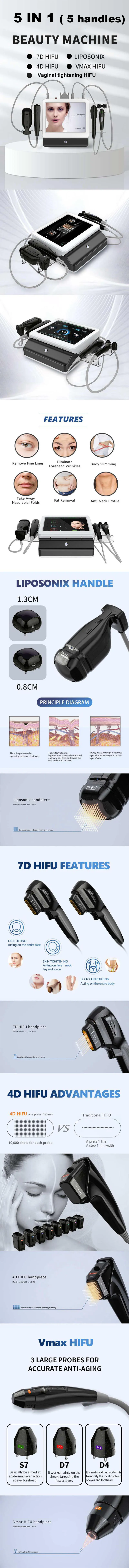 5 in 1 7D hifu machine with 2d 4d hifu vaginal vmax liposonix